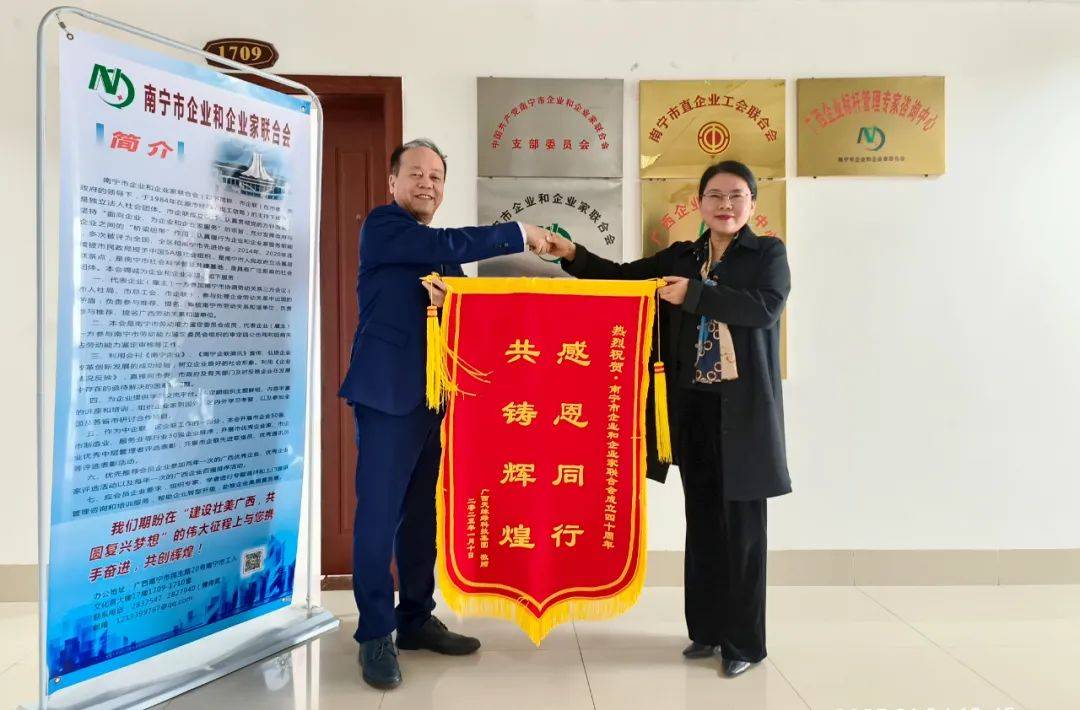 會(huì)后,郭陽總裁代表天緣綠集團(tuán)向市企聯(lián)敬贈(zèng)了一面寫有“感恩同行·共鑄輝煌 熱烈祝賀南寧市企業(yè)和企業(yè)家聯(lián)合會(huì)成立四十周年”的錦旗,以此表達(dá)對(duì)市企聯(lián)長(zhǎng)期以來支持與幫助的深深感激。天緣綠集團(tuán)作為市企聯(lián)的副會(huì)長(zhǎng)單位,一直秉持著“誠(chéng)信、共贏、感恩、付出、堅(jiān)持”的企業(yè)理念,與市企聯(lián)攜手共進(jìn),共同推動(dòng)健康產(chǎn)業(yè)的繁榮發(fā)展。