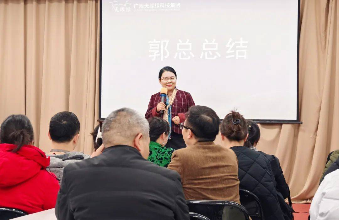 天緣綠集團(tuán)運營總裁郭陽女士發(fā)表了指導(dǎo)總結(jié)講話,對全體員工提出了殷切希望和明確要求。郭陽總裁指出,2024年已經(jīng)結(jié)束,無論結(jié)果如何,都在今天畫上了句號,讓我們以全新的姿態(tài)迎接2025年的挑戰(zhàn)。她強(qiáng)調(diào),自律程度決定成長高度,希望大家在新的一年,從思維和行為上都有所提升,真正實現(xiàn)自我超越。